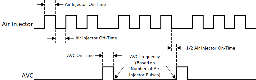 1x to set the Air Injector On-Time in seconds from 2.0s to 26.5s