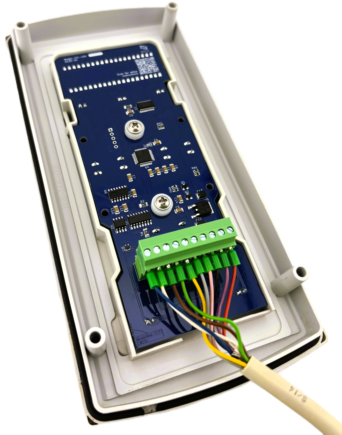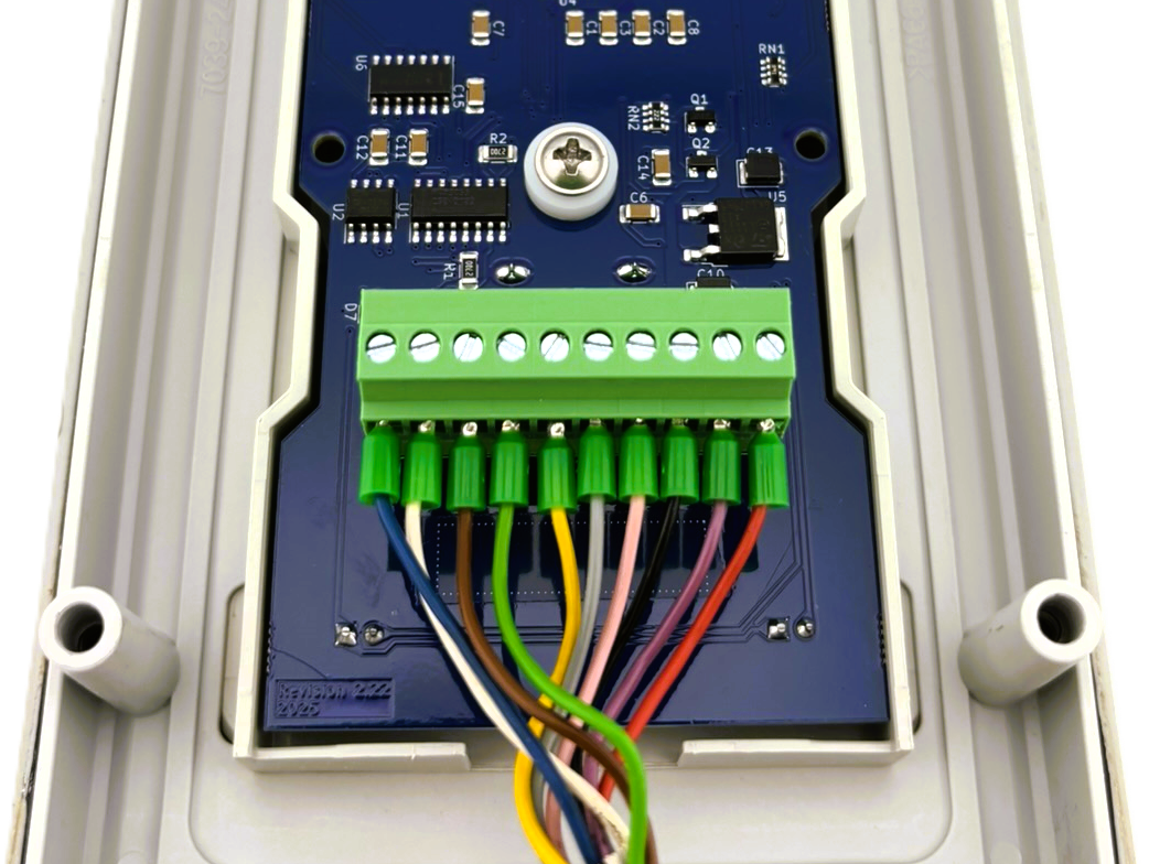 Insert the individual wires by color code (as shown on PCB) into the supplied 10 pin plug, making sure the plug is in the correct orientation.